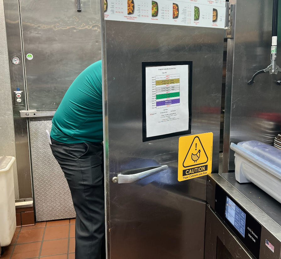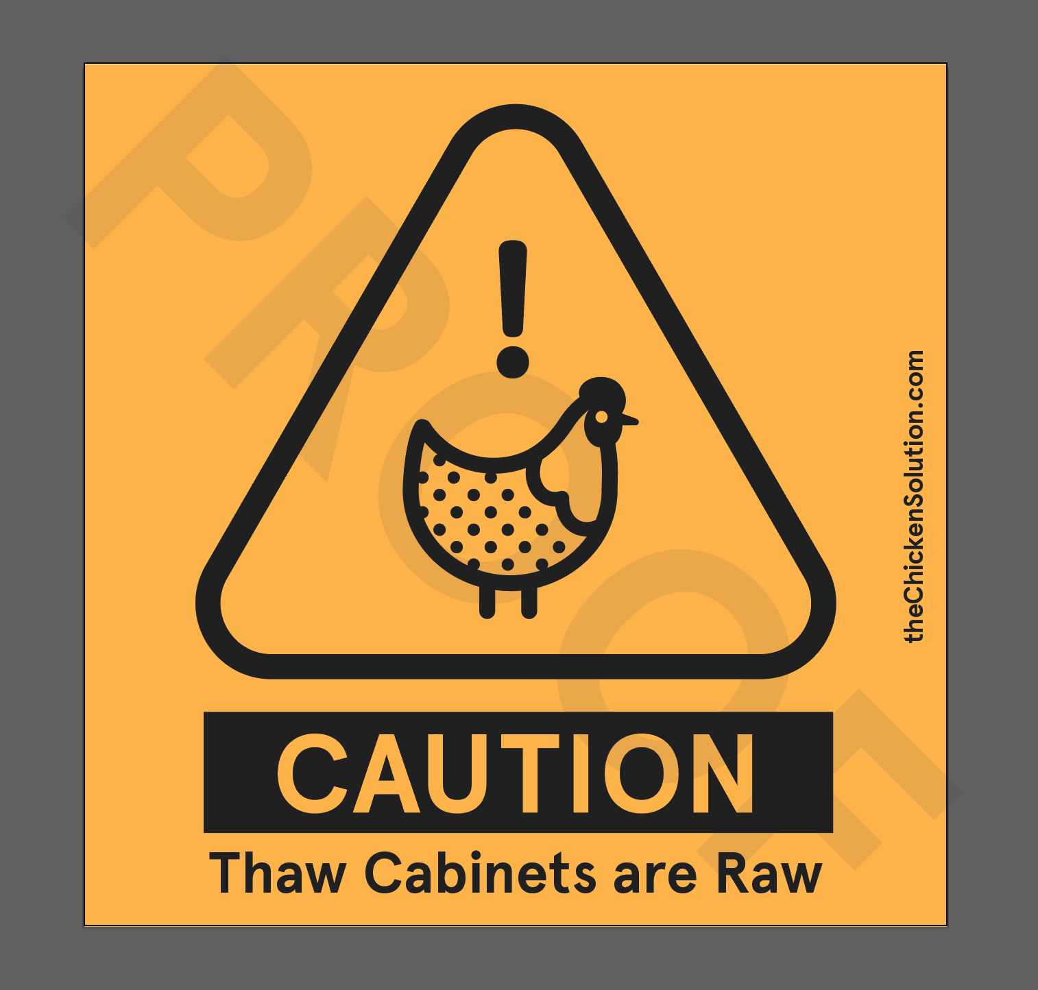 This 8 x 8 inch Caution (RAW CHICKEN) Label serves as a helpful reminder for team members to exercise caution in areas with raw chicken. Available as a magnet or sticker, this label promotes safety and awareness in the kitchen.